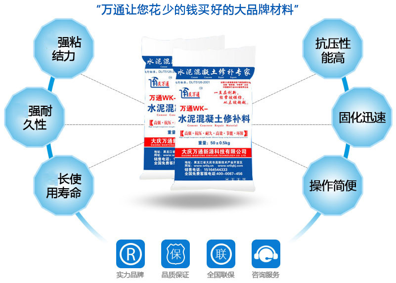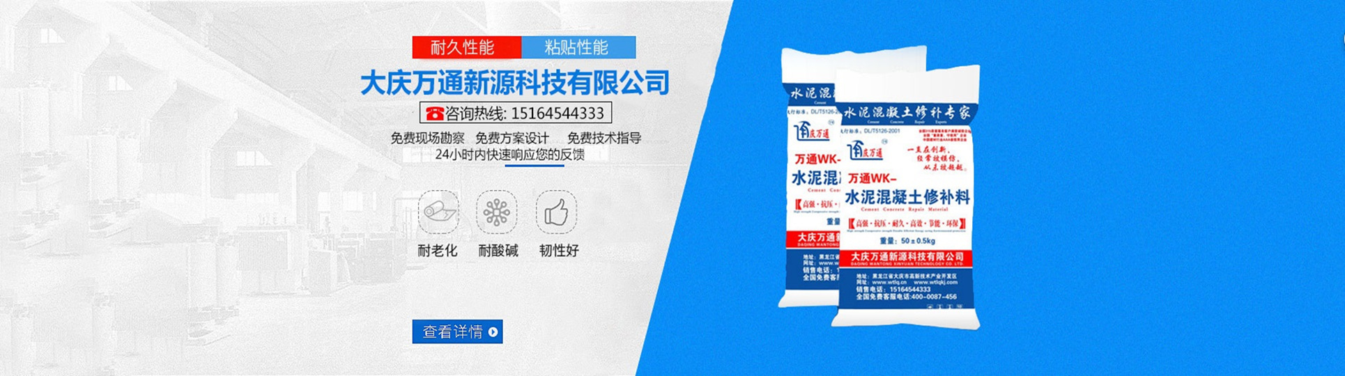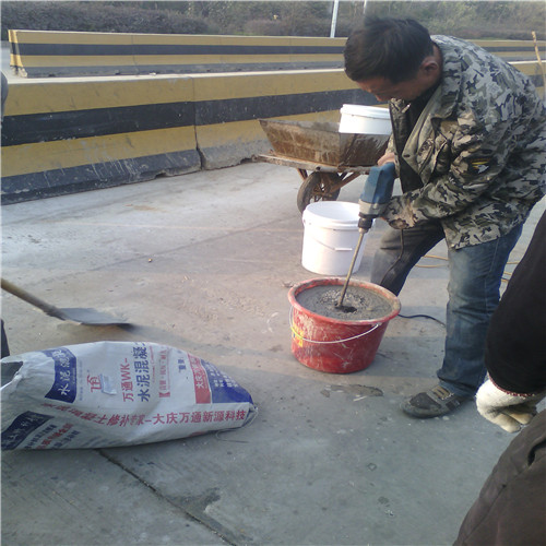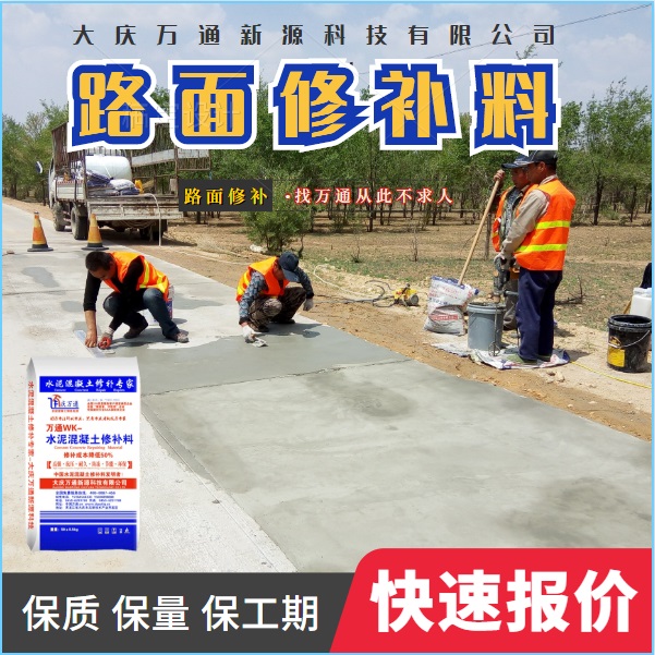 大慶萬通新源科技有限公司獨有的混凝土路面高強速補料,是水泥混凝土路面病害修復的好材料。疲勞、凍融循環(huán)、彎曲壓力、滲水和基層破壞等原因都會引起水泥路面的破損,從而帶來高昂的維護費用。與以往的剛性修補方法不同,混凝土水泥路面維修速補膠提供了一種獨特的柔性修補產(chǎn)品和技術(shù),高柔性、高抗拉性,可跨伸縮縫施工和高抗壓性使得混凝土快補產(chǎn)品為水泥混凝土路面提供了******性的修補。傳統(tǒng)的剛性修補方案,如環(huán)氧砂漿和快干水泥產(chǎn)品,由于其自身的粘結(jié)失效,抗疲勞性低以及與原路面不同的伸縮系數(shù),修補面會在短時間內(nèi)失效或產(chǎn)生新的裂縫,需要反復修補,有效期短且費用高昂。大慶萬通新源科技有限公司的混凝土水泥路面維修速補膠可以隨原路面一起伸縮,移動,從而避免了粘結(jié)失效和產(chǎn)生新裂縫。萬通快補產(chǎn)品優(yōu)異的粘結(jié)性、柔韌性和高防滑性,特別適用于水泥路面的淺層粘合修補,多邊角混凝土板層修補,跨伸縮縫修補以及路面沉陷修補。萬通混凝土病害修補料針對混凝土起皮起沙、斷板裂縫、蜂窩麻面、坑槽露石子、漏筋掉皮、橋梁的掉皮漏筋快速通車使用時間長。應用萬通快補產(chǎn)品,施工后一天就可以恢復交通。大慶萬通新源科技有限公司的萬通水泥路面維修速補膠適用于高速公路、機場路面、農(nóng)村村村通路面、廠坪、學校操場、市區(qū)公路、小區(qū)路面、橋梁、水泥路面的修補。使用萬通特快補材料修補路面可以一勞永逸! 水泥地面起砂怎么辦,混凝土修補劑混凝土地面起砂,混凝土地面修補,地面起砂怎么辦,